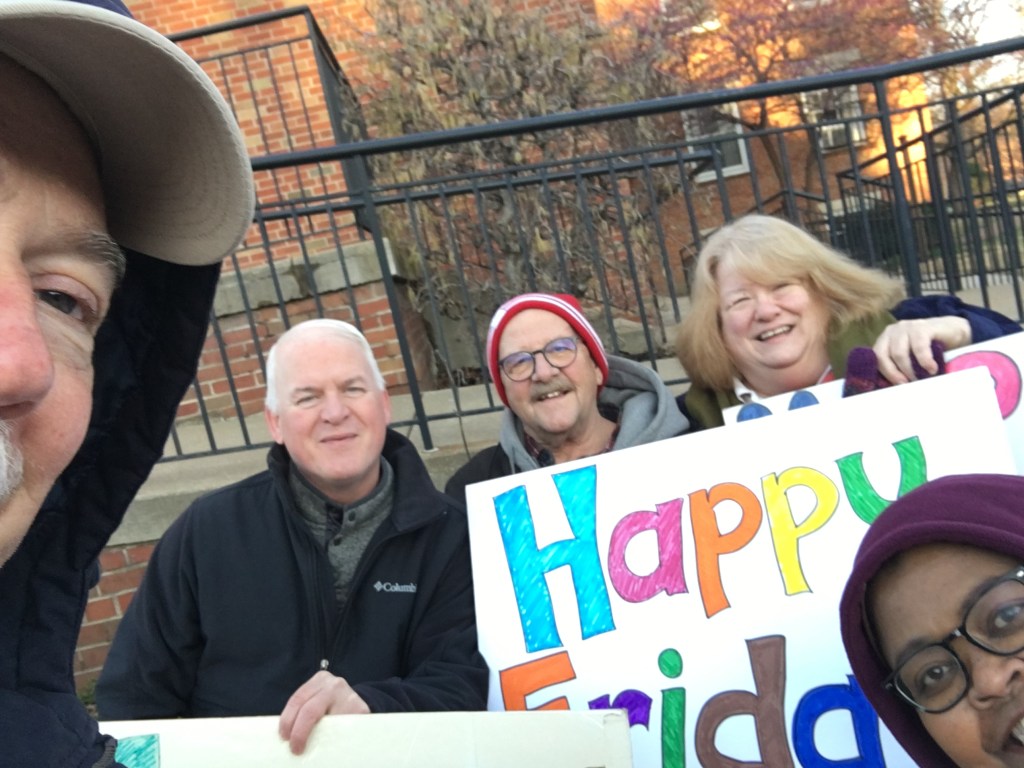 - Happy Friday is back! After a two year pause, the Happy Friday group will greeting passersby on South Grand from 7-8 a.m. on Friday mornings starting in April. For details, talk to Steve or Bud Obermiller