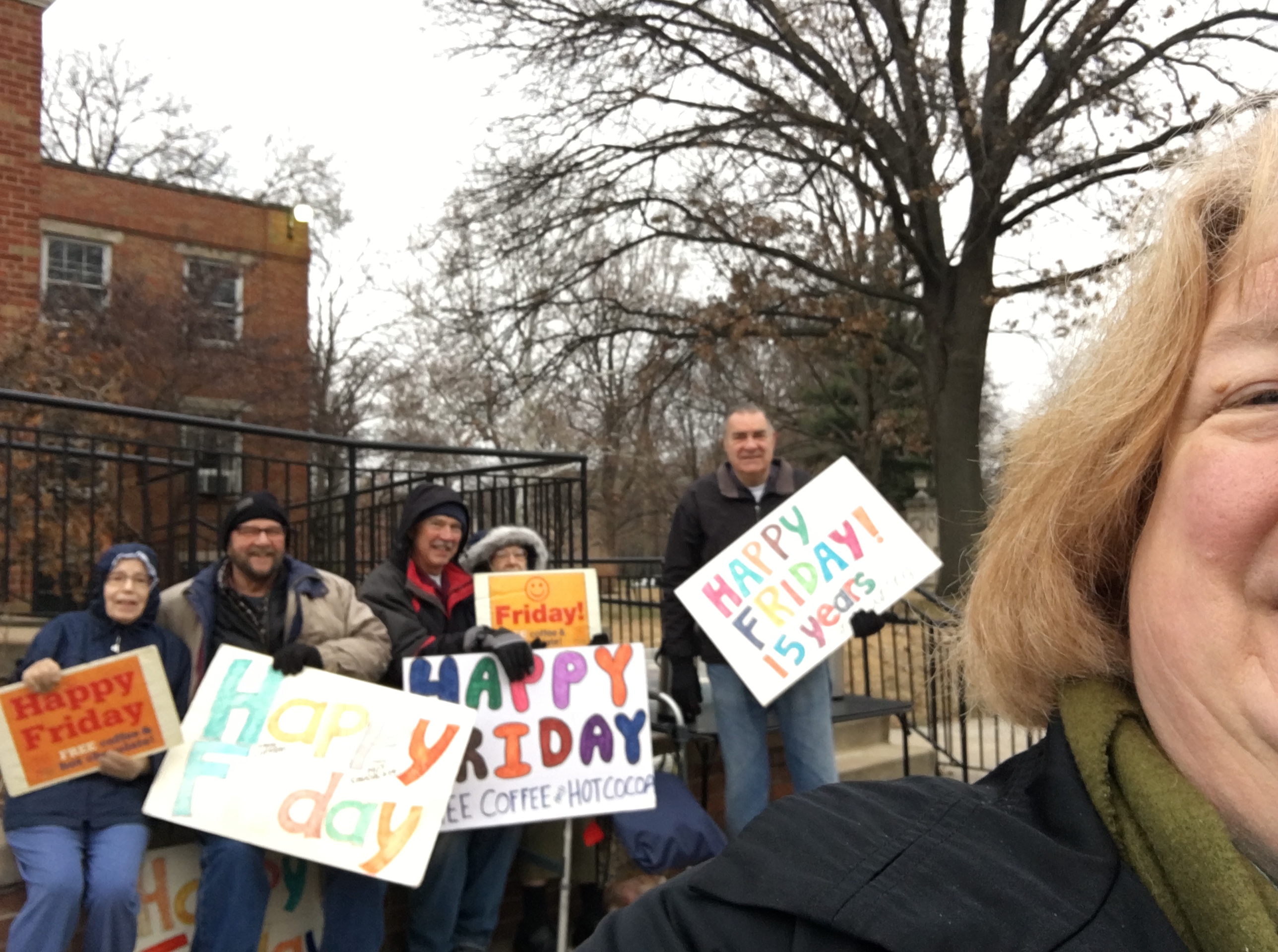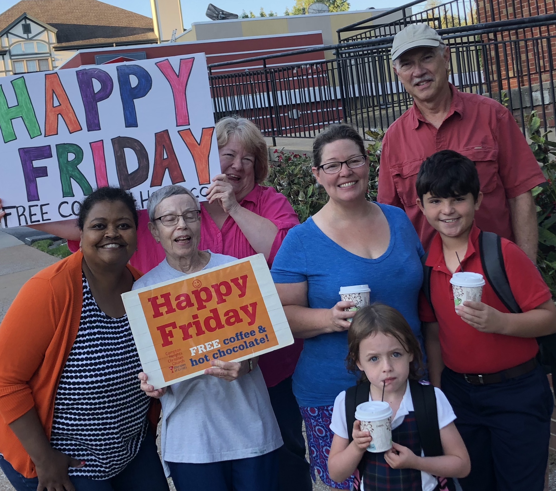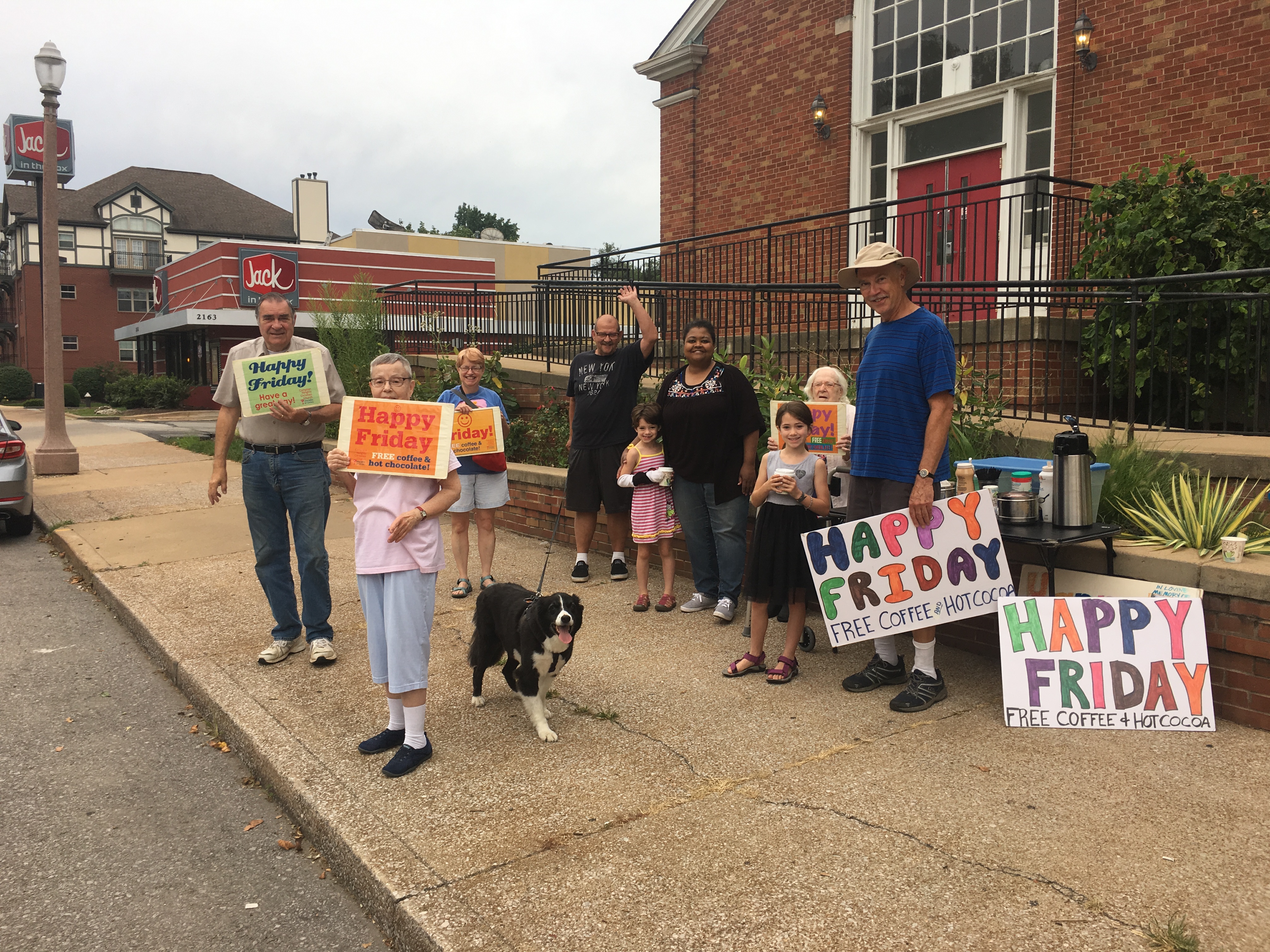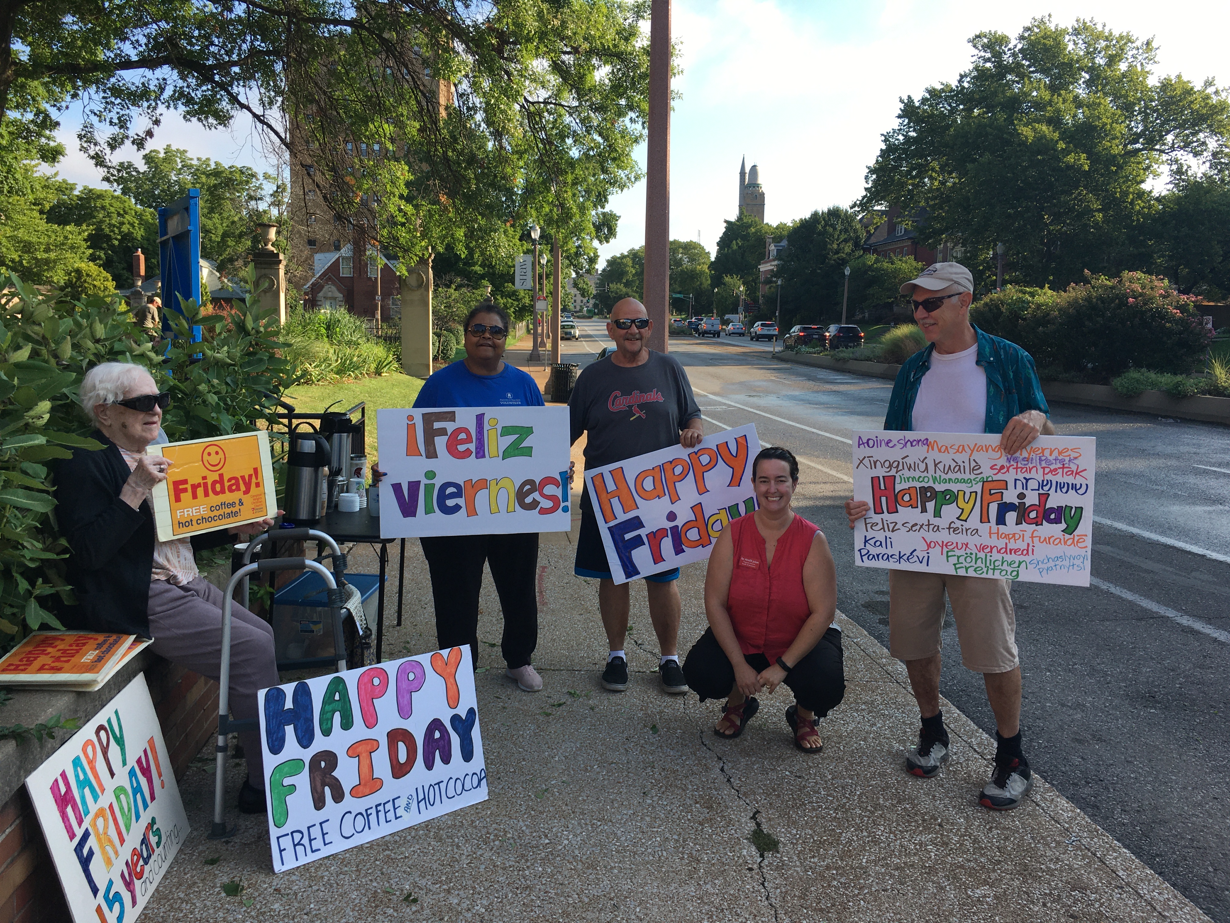 So since Friday, September 17, 2004, we have been greeting our neighbors with “Happy Friday” and offering them a cup of coffee or hot chocolate. It is a wonderful way to welcome people where they are for exactly who they are. It is a wonderful gift. In a world that has become so contentious, Happy Friday is something just about everyone can agree with.