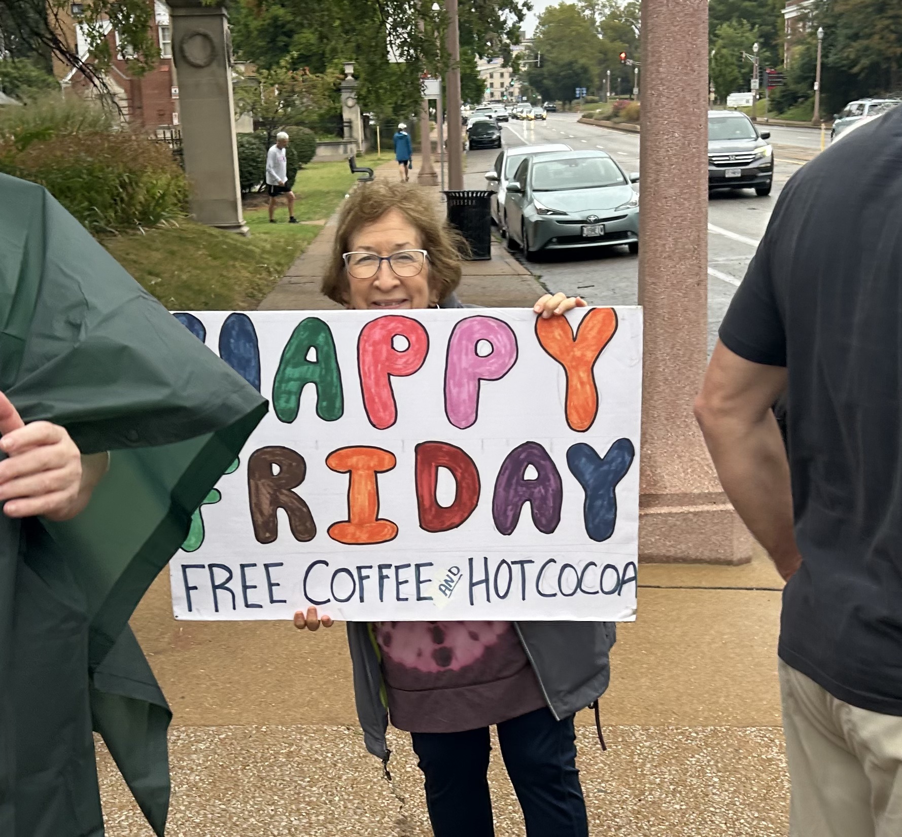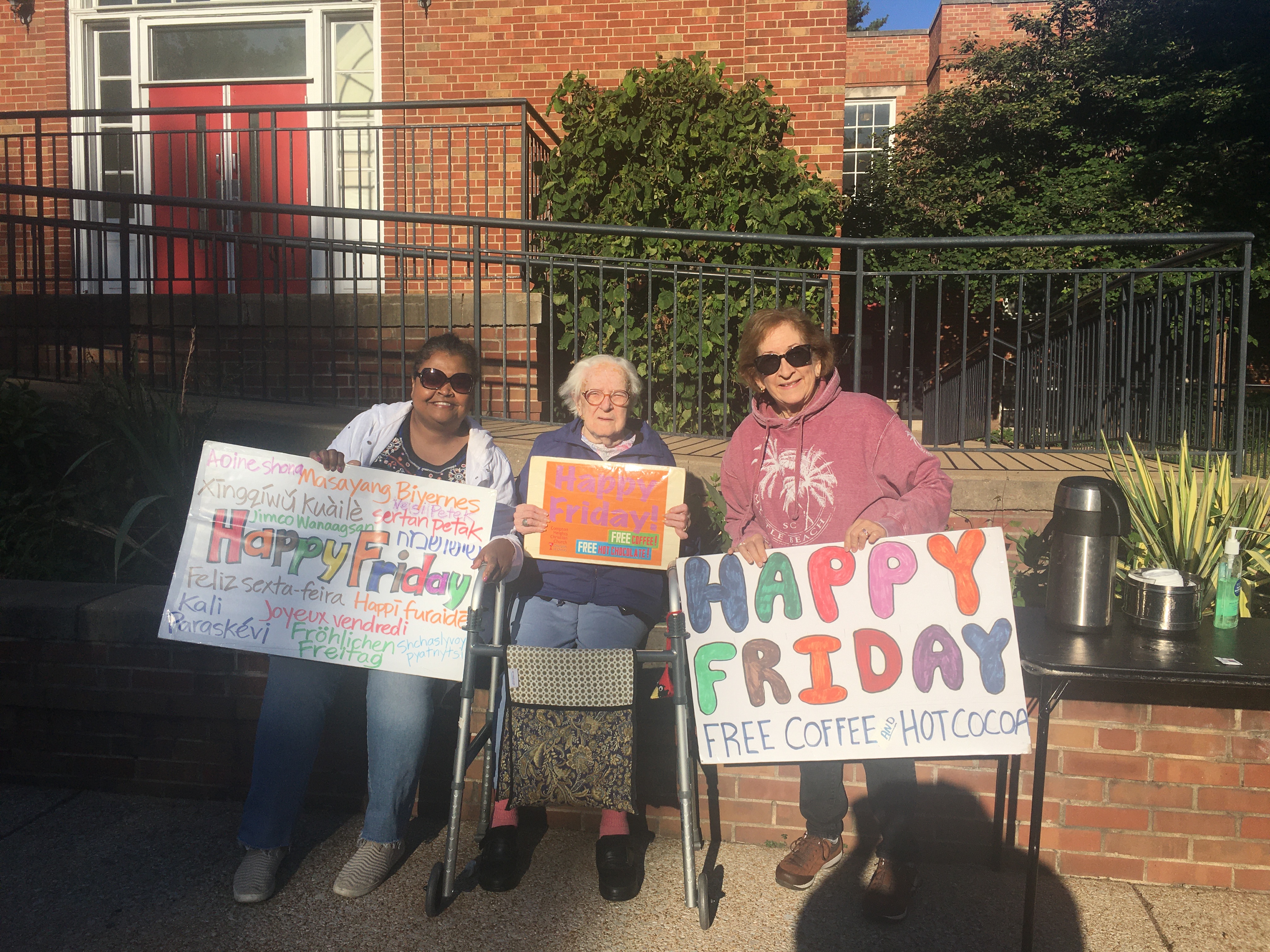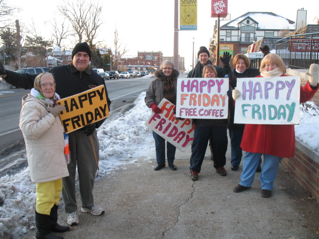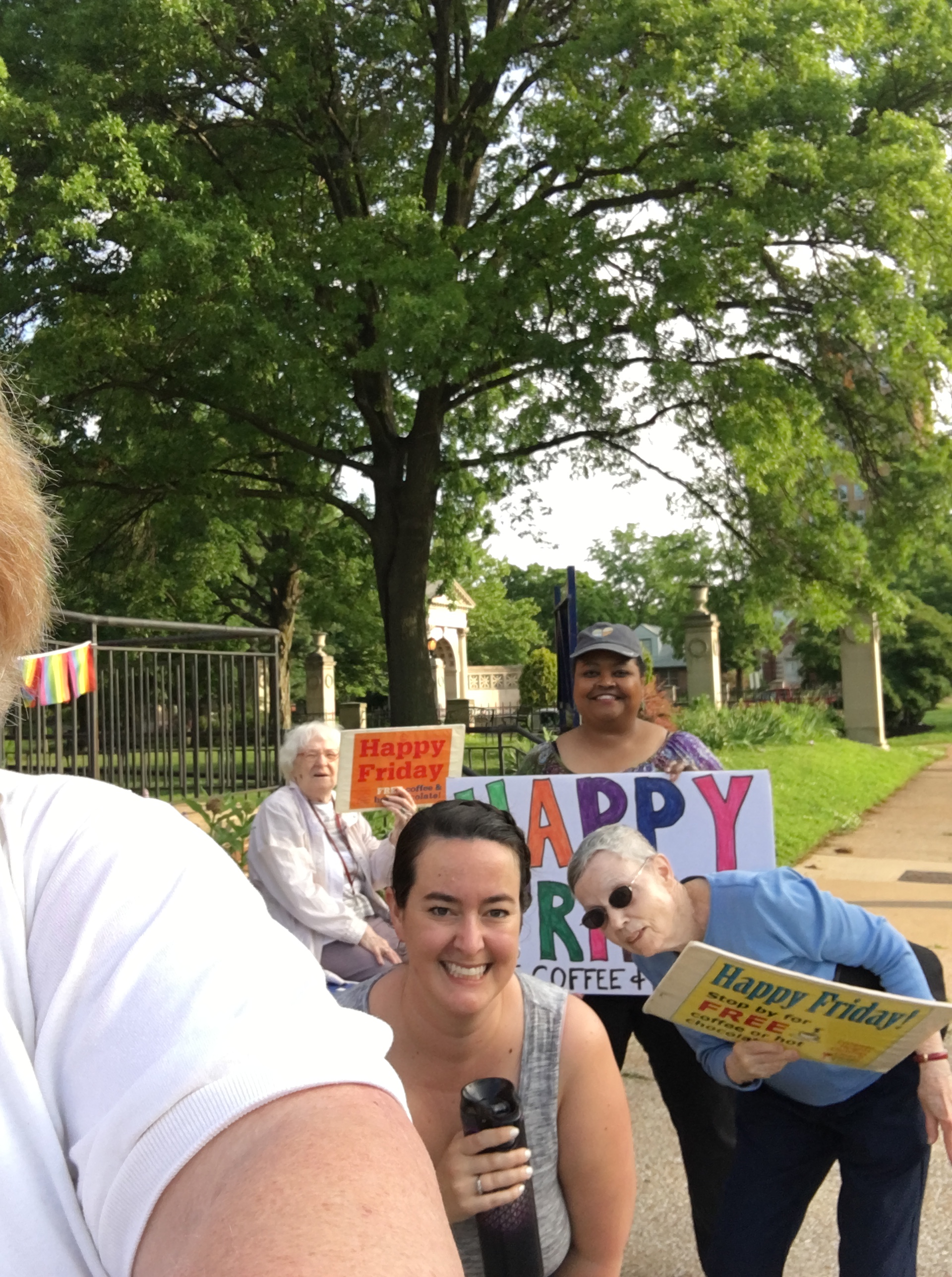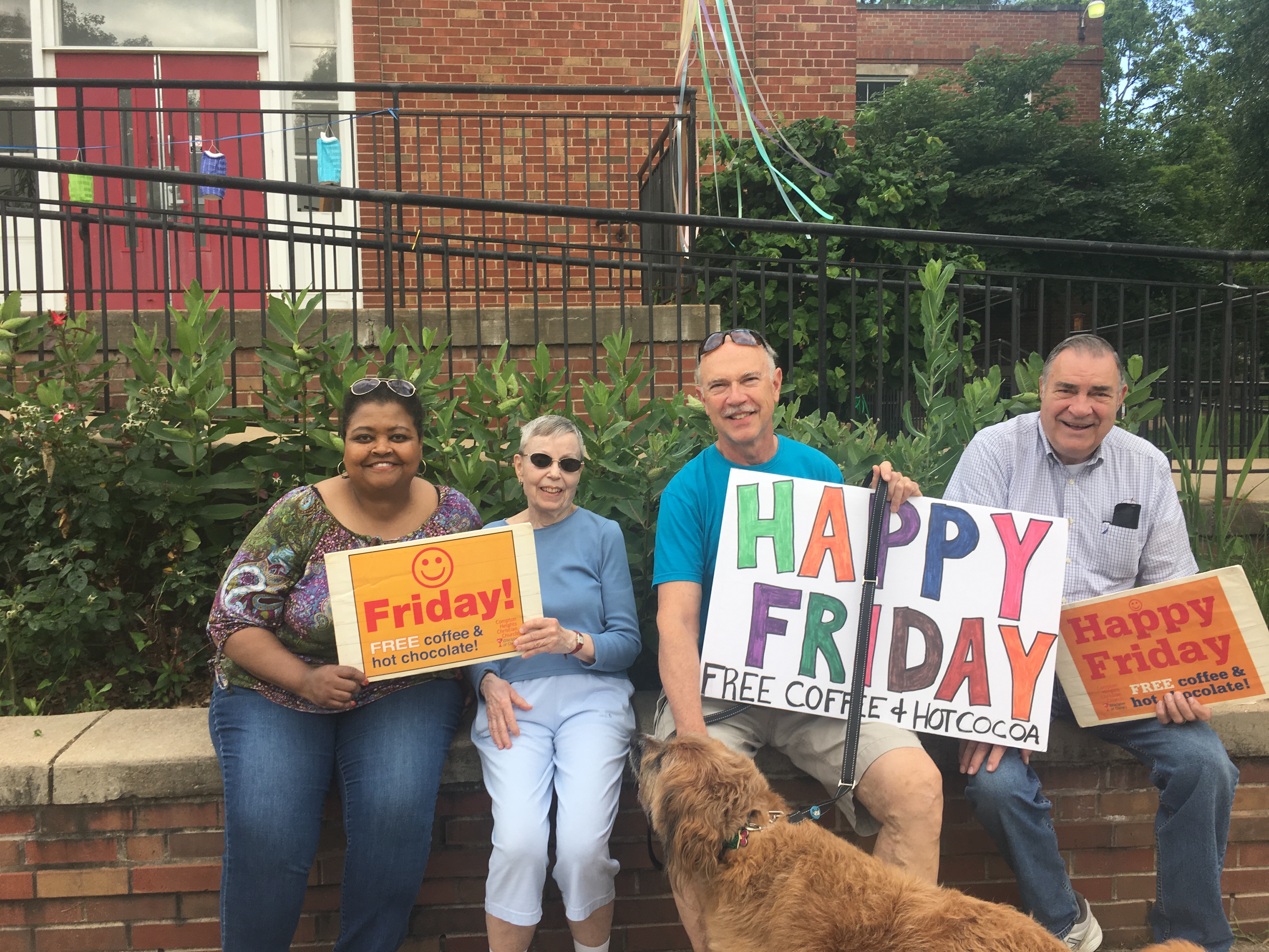 So since Friday, September 17, 2004, we have been greeting our neighbors with “Happy Friday” and offering them a cup of coffee or hot chocolate. It is a wonderful way to welcome people where they are for exactly who they are. It is a wonderful gift. In a world that has become so contentious, Happy Friday is something just about everyone can agree with.