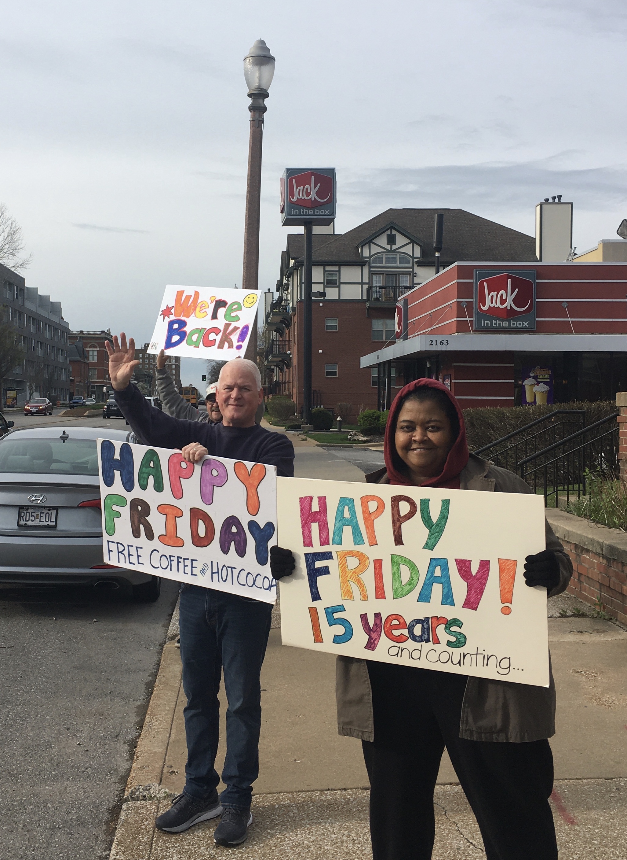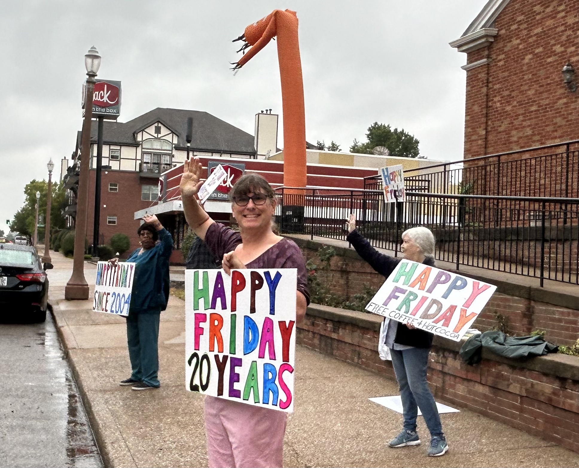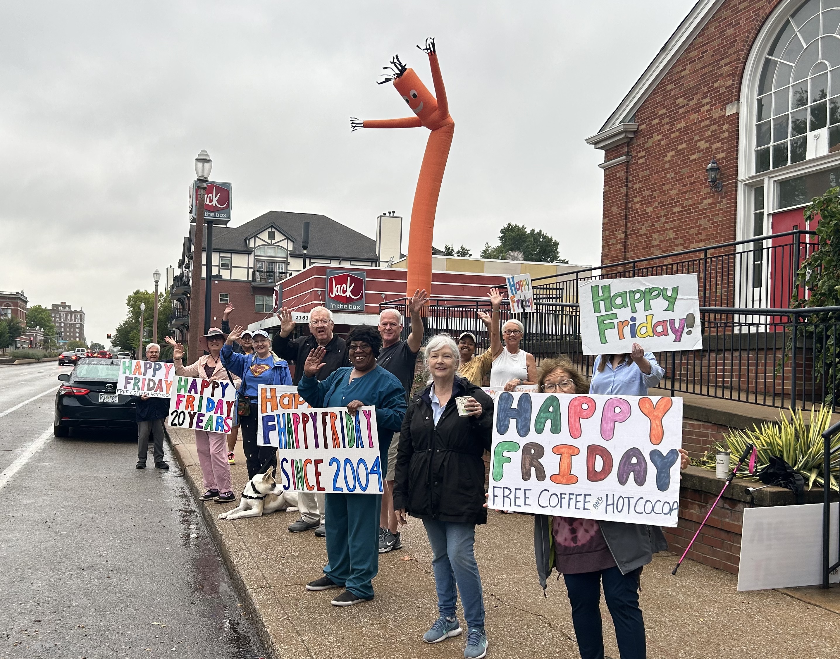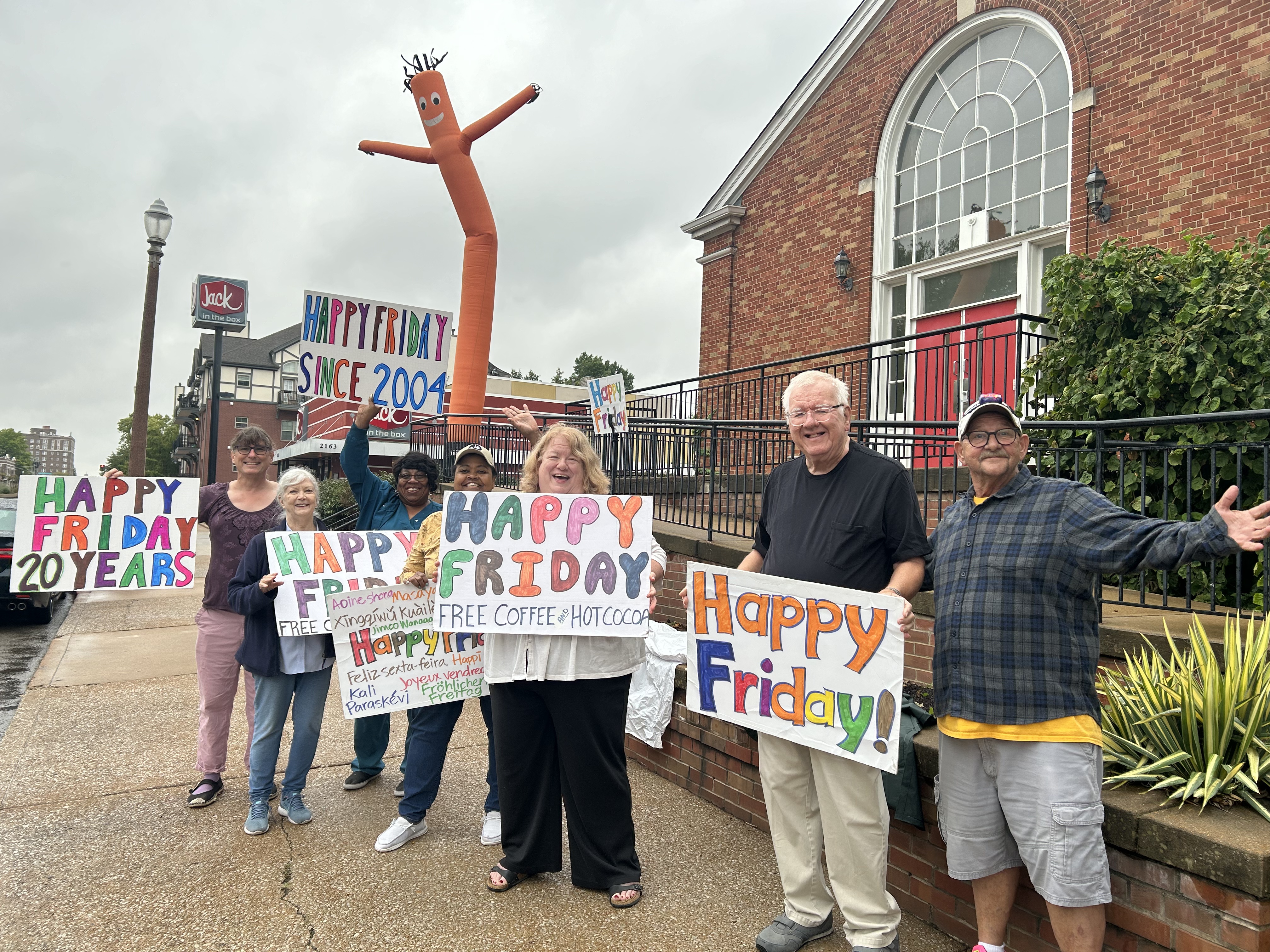 “Happy Friday” is a greeting that has become a part of the life of many who drive past our church on Friday morning. Over these 20 years we have come to realize that we have all been touched and transformed in some way by this simple experience.