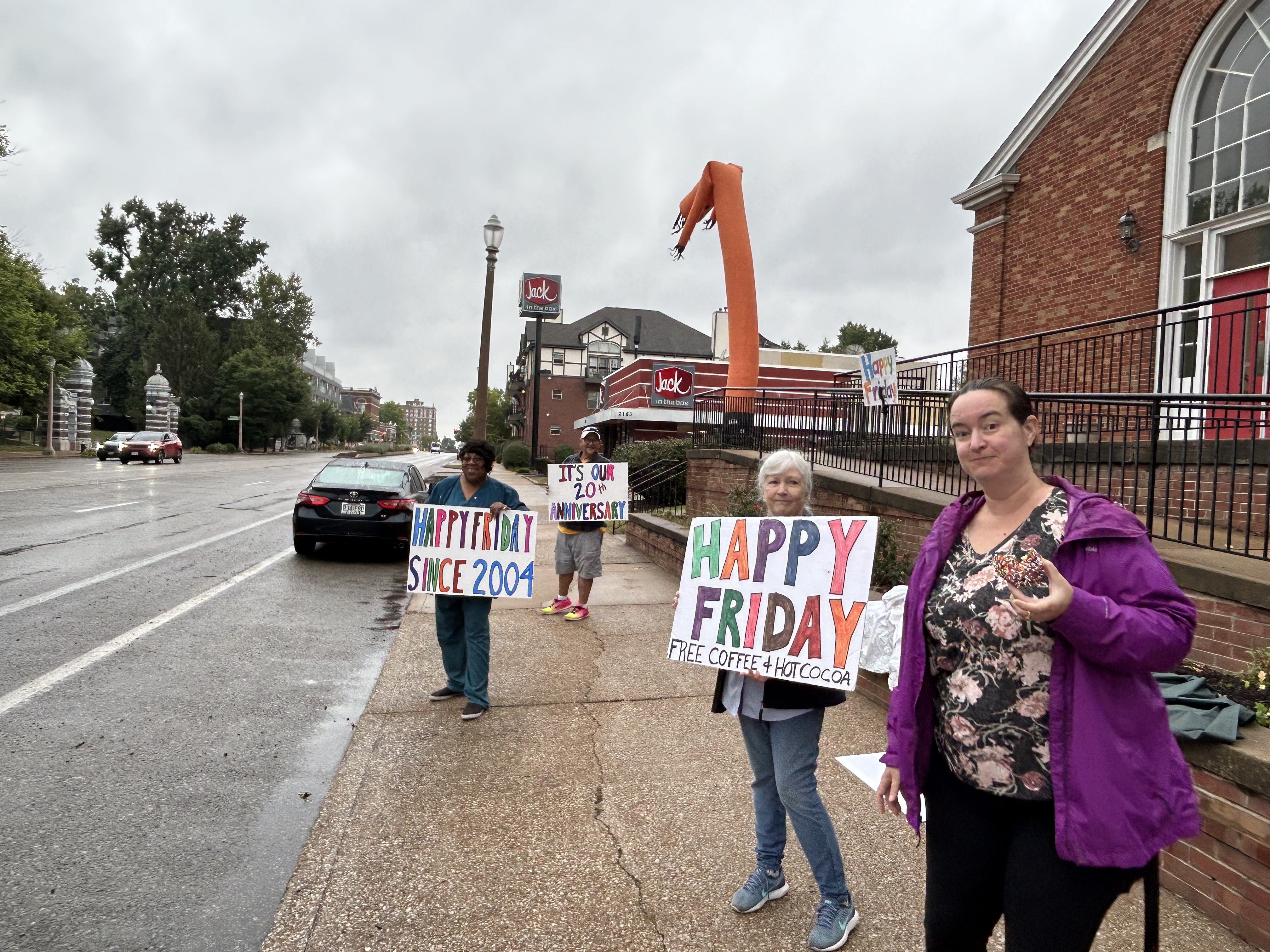 Join us on Friday, September 13th on the sidewalk in front of church between 7:30 am and 9:00 am as we celebrate our 20th Anniversary.