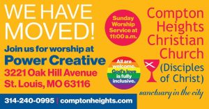 Our mailing address will change. The new mailing address is: Compton Heights Christian Church, 3232 Clifton Ave. Box #21817, St. Louis MO 63139-9998. Our phone number remains the same: 314-240-0995.
