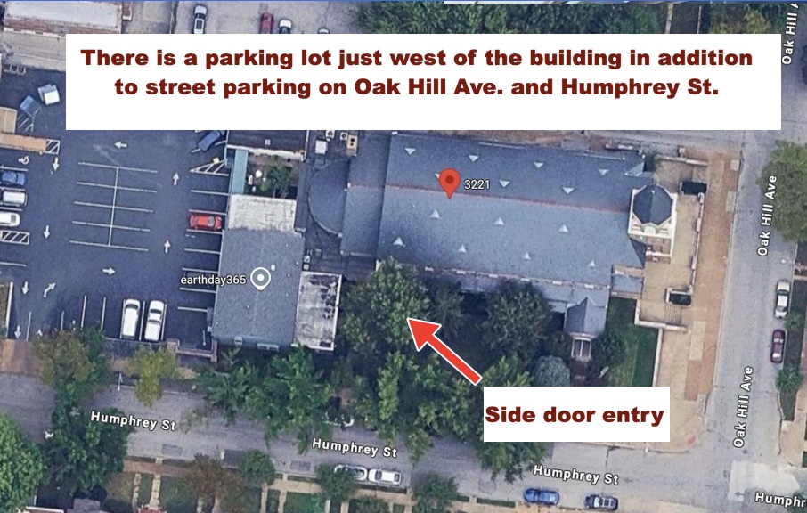 There is a parking lot west of the building, the entrance to the lot is off of Humphrey Street. There is also street parking on Humphrey Street and Oak Hill Avenue.