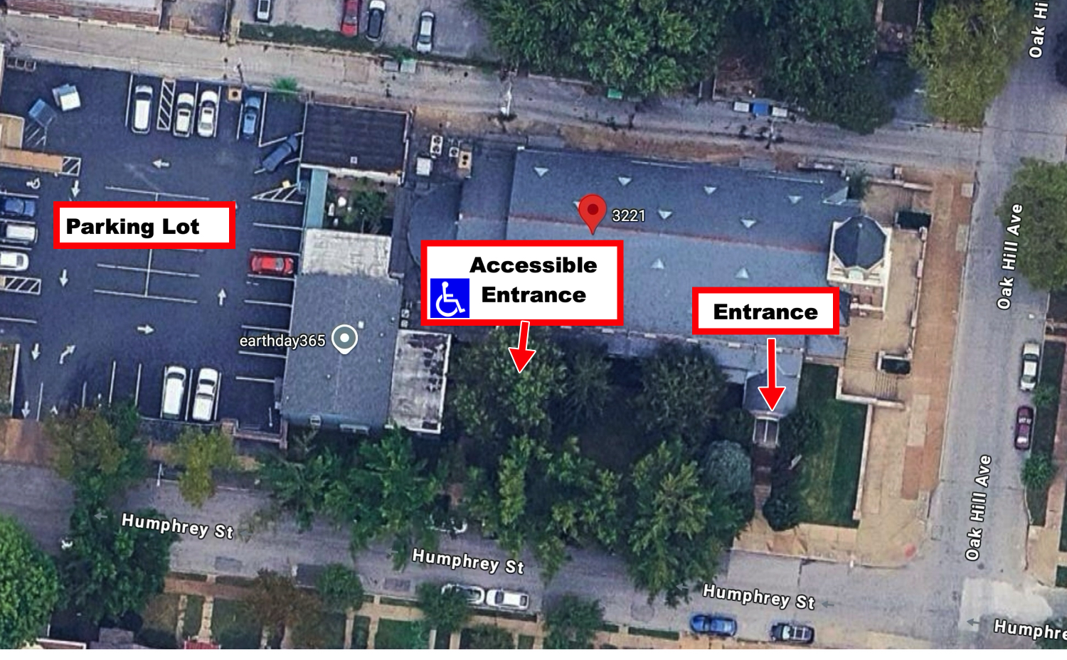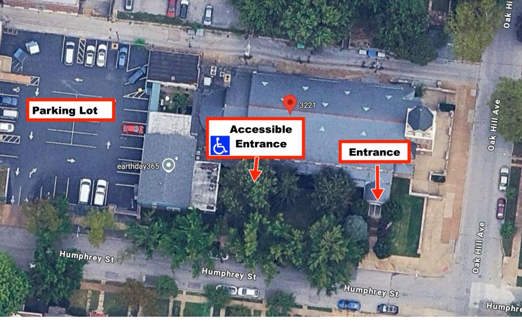 We moved in November 2025. We worship at Power Creative (the former Holy Family Catholic Church building) 3221 Oak Hill Ave, St. Louis MO 63116, at the corner of Oak Hill Avenue and Humphrey Street. Enter the building from the side doors on the Humphrey Street side of the building. See photo below for where to enter the building. The accessible entrance is across the street from 4112 Humphrey Street.