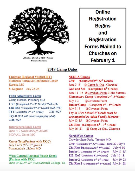 Church Camp – Register now! Go to Mid-America Region website to apply for for camp. Many Compton members sign up for the Intergenerational Camp at MoVal June 6th – 10th. (NOTE: This date is correction to date stated below)
