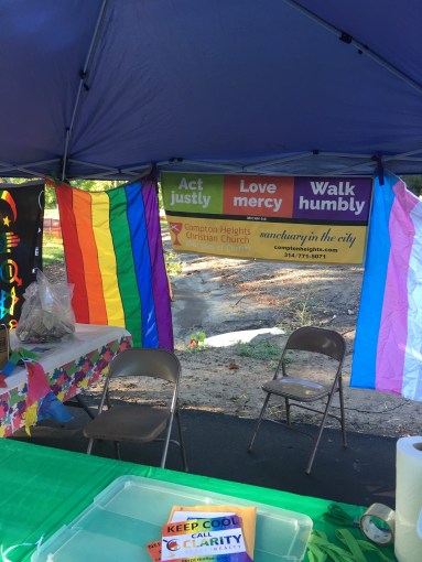 Starting in 2018 Compton has joined with other St. Louis Area Disciples of Christ congregations to sponsor the booth at PrideFest downtown. We also sponsor our own booth at Tower Grove Pride. It is always a great experience; we have powerful faith conversations with the wonderful people who came to visit our booths. We hope to see you at Pride!
