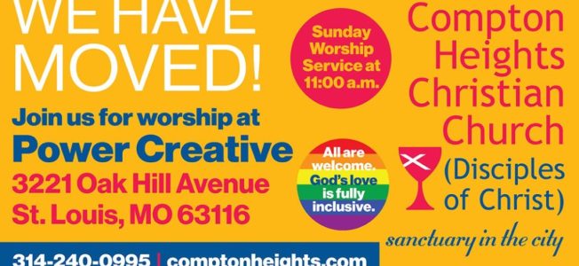 Our mailing address will change. The new mailing address is: Compton Heights Christian Church, 3232 Clifton Ave. Box #21817, St. Louis MO 63139-9998. Our phone number remains the same: 314-240-0995.