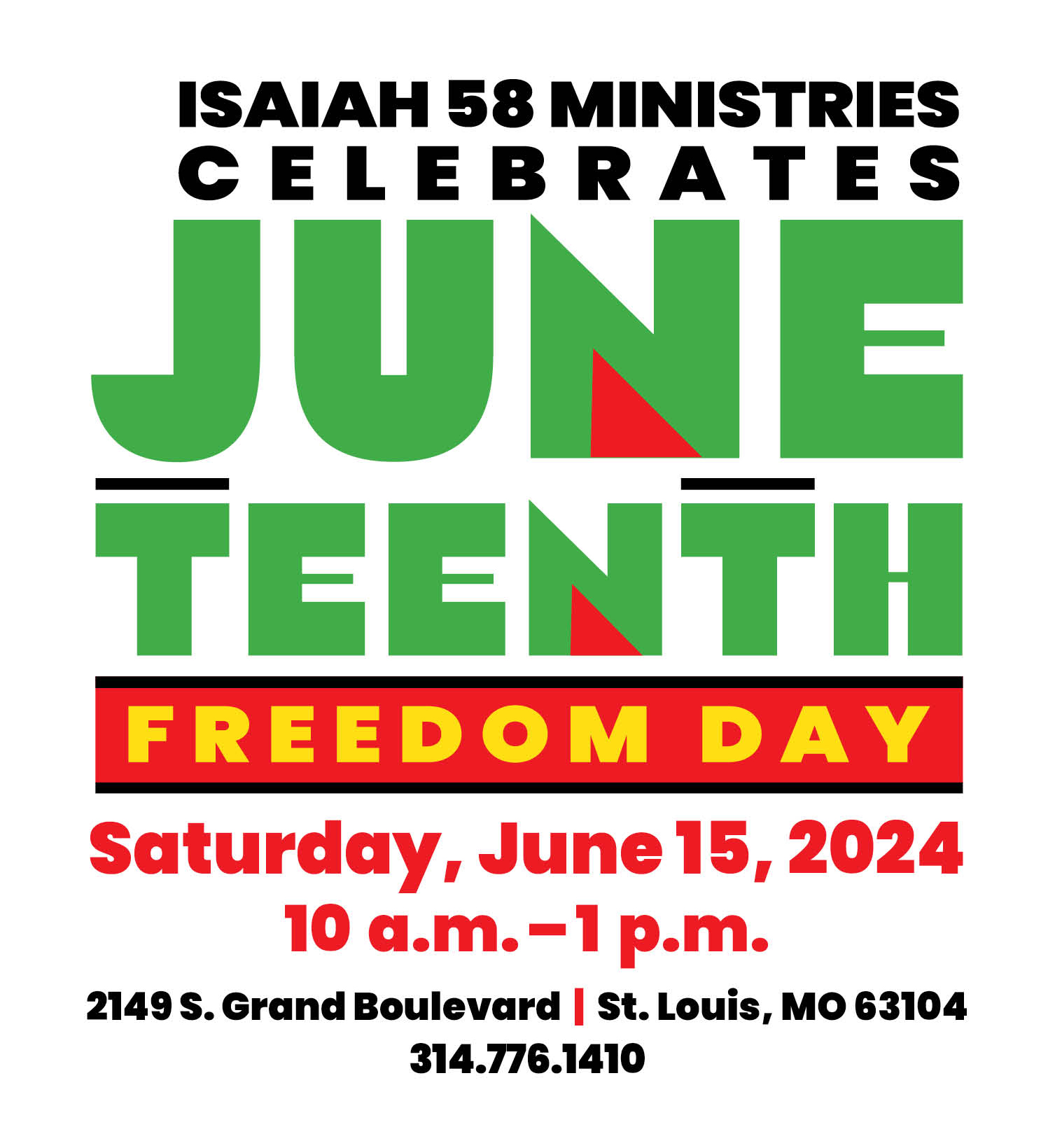 Isaiah 58 Ministries is hosting their 3rd Annual Juneteenth Event – there will be yard games, food and booths with information on locally owned companies and neighborhood organizations.