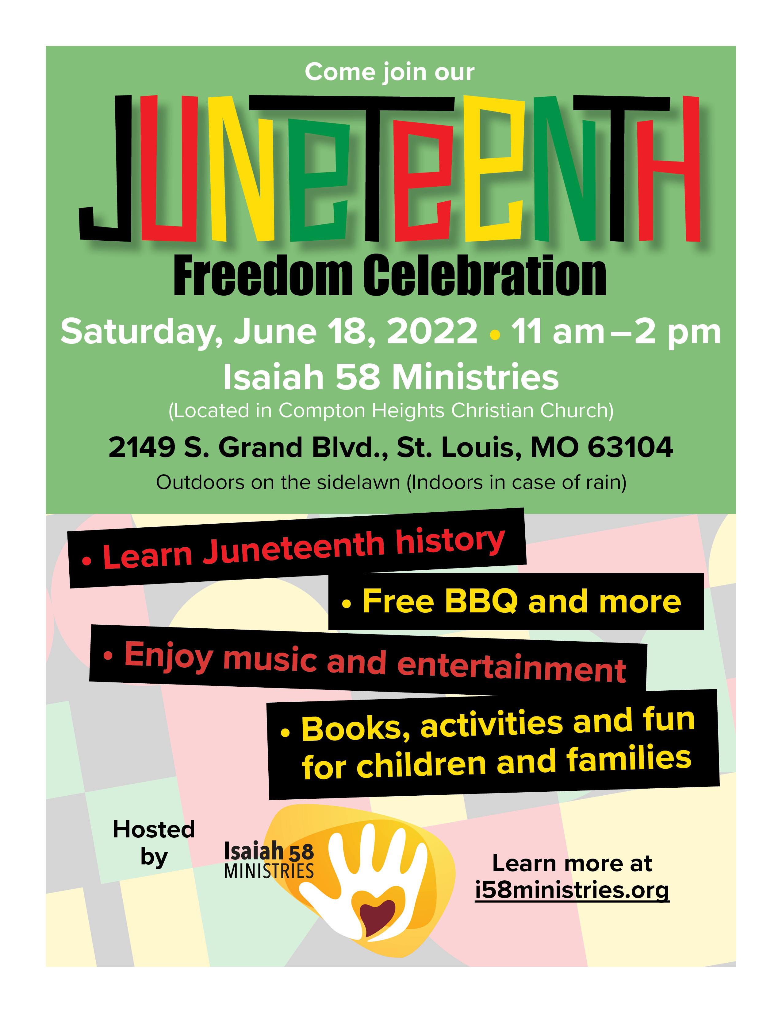 Juneteenth Celebration – Saturday, June 18th – sponsored by Isaiah 58 Ministries
