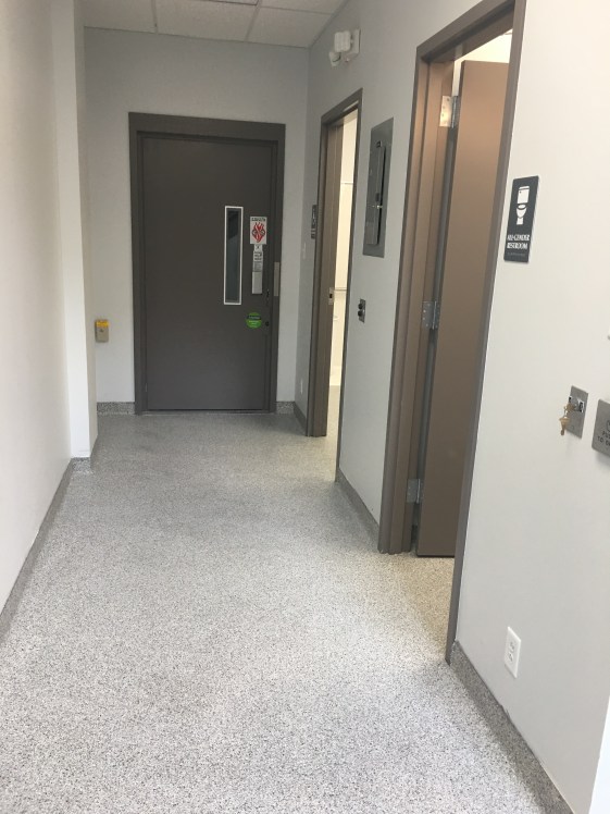 As of November 11, 2019 the restroom fixtures are installed; water fountains are installed; the walls are up; the lift is partially assembled and the new doorway to the fellowship hall is complete.